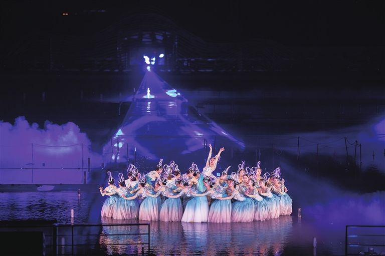 5月21日,《如梦晋阳》第四季在晋阳湖畔华丽复演。此次演出新增无人机表演,带来文化创意与虚拟科技的碰撞。 王韵菲 摄