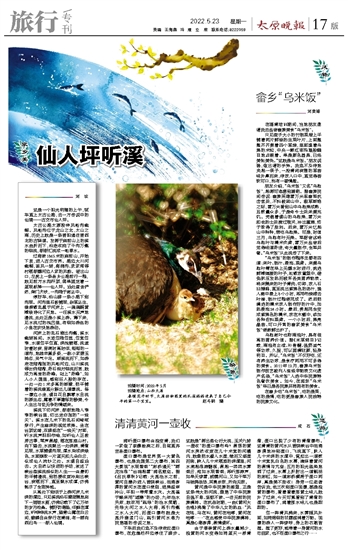 过海拔1865米的庙前山,开始下坡,进入古交市界。路边大川河蜿蜒,画风一转,梅洞沟、武家湾等村落渐露河边人家的风韵。驶出山口,左拐上一条县乡公路前行一程,就见前方水泥杆顶,简单固定着一蓝底标牌——仙人坪。远处屋舍俨然,柴门犬吠,一沟隐于树丛中。