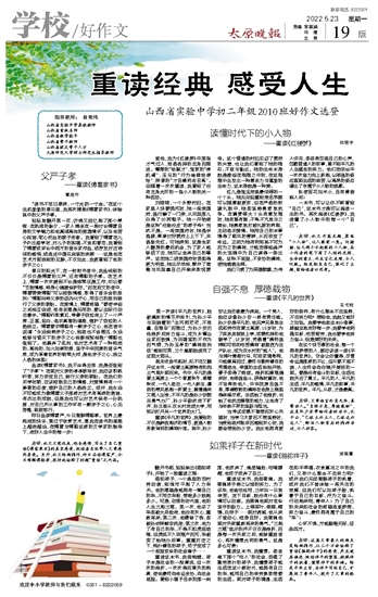 点评:这篇文章最大的特点是结构精巧,从三个方面诠释了重读《骆驼祥子》的感受,并且逐层推进,惋惜祥子的堕落,敬佩祥子的执着,憧憬祥子的幸福。结尾升华主旨,由祥子写到自己,扩展到了青年人,提升了文章的格局。