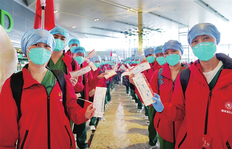近日,上海疫情防控取得阶段性成果,随着多家方舱医院的休舱,各地援沪医疗队陆续离沪。 新华社 发