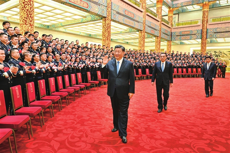 郭声琨参加会见并在表彰大会上讲话。他指出,全国公安机关要以习近平新时代中国特色社会主义思想为指导,深入贯彻习近平法治思想,全面贯彻党的十九大和十九届历次全会精神,深刻领悟“两个确立”的决定性意义,增强“四个意识”、坚定“四个自信”、做到“两个维护”,忠实践行对党忠诚、服务人民、执法公正、纪律严明的总要求,学习弘扬英模精神,全力做好防风险、保安全、护稳定各项工作,以实际行动迎接党的二十大胜利召开。