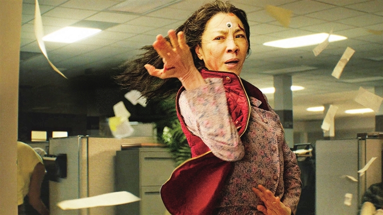功夫科幻片《瞬息全宇宙》由丹·关和丹尼尔·施纳特执导,杨紫琼、杰米·李·柯蒂斯、关继威等主演,讲述杨紫琼饰演的秀莲面临中年困境:老公想要和她离婚,女儿叛逆疏离,父亲对她处处不满,经营的洗衣店有各种烦心事……结果她突然被来自另一个宇宙的丈夫告知:世上存在很多个宇宙,也有很多个“她”,冥冥之中这些“她”的命运有所联系,而这许许多多个宇宙的命运,如今掌握在这个“她”的手上。影片于今年3月25日北美上映,凭借着天马行空的想象,以及搞笑又充满寓意的杂糅风格,让观众大呼过瘾,烂番茄指数97%,成为今年最大的黑马之作。