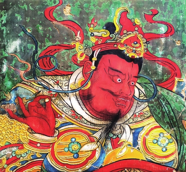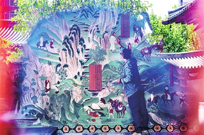 为了增强壁画的艺术性,张放在传统沥粉、贴金的基础上,又自创镶嵌技法,使画面更具层次感和表现力。