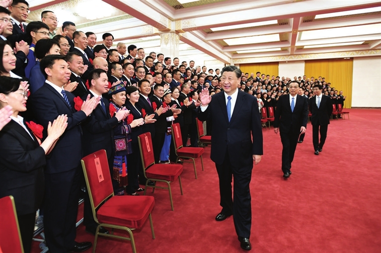 25日上午,习近平等来到人民大会堂北大厅,全场响起热烈掌声。习近平等走到代表们中间,同大家亲切交流并合影留念。