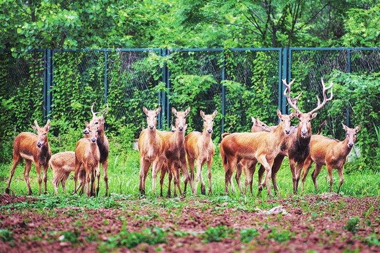 东洞庭湖麋鹿和鸟类救治避难中心位于湖南省岳阳市,占地400余亩,自2016年9月中心建成以来就承担起东洞庭湖区域麋鹿的救援、医治、康复和喂养任务。截至目前,该中心共有19只麋鹿正在接受救助。 新华社 发