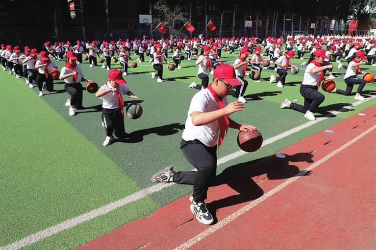 5月27日,迎泽区双北小学举行“六一”汇演。活动通过体育特色社团项目演出展现教学成果,迎接“六一”儿童节。 张昊宇 摄