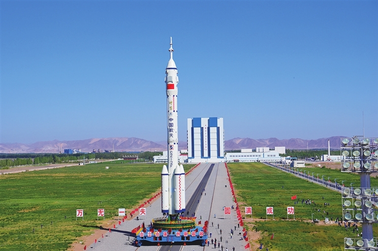 神舟十四号船箭组合体转运至发射区