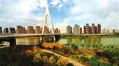 初夏时节,太原市的天气相对稳定。汾河两岸天蓝水清,郁郁葱葱,多姿多彩,成为人们休闲娱乐、锻炼身体的好去处。 杨靳葆 摄