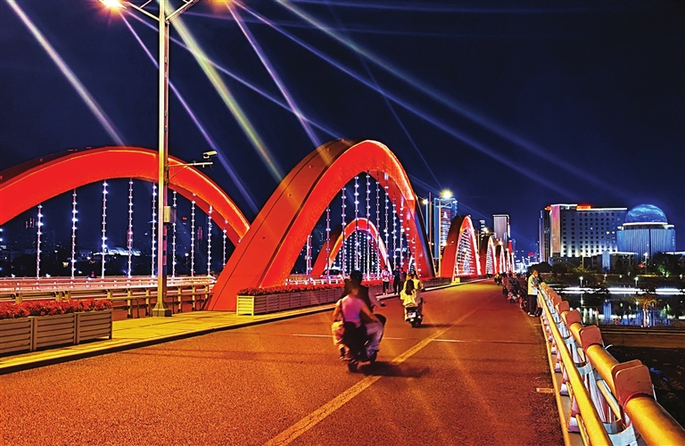 5月30日晚,粉饰一新的漪汾桥成为太原夏夜又一“新”景。记者 宿晓健 摄