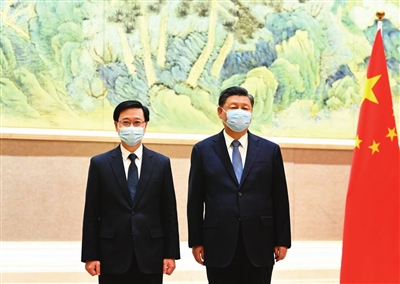 习近平强调,今年适逢香港回归祖国25周年。25年来,尽管经历了许多风雨挑战,但“一国两制”在香港的实践取得了举世公认的成功。中央全面准确贯彻“一国两制”方针的决心从没有动摇,更不会改变。在中央政府、香港特别行政区政府和社会各界的共同努力下,香港已实现由乱到治的重大转折,正处在由治及兴的关键时期。我相信,新一届特别行政区政府施政一定会展现新气象,香港发展一定会谱写新篇章。
