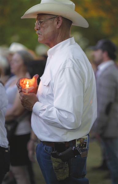 5月29日,在美国得克萨斯州南部尤瓦尔迪市的城市广场,市民为枪击事件遇害者守夜。 新华社 发