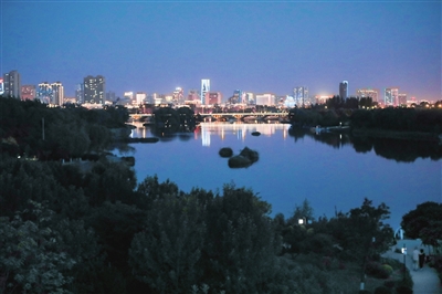 5月30日,汾水倒映着并州霓虹,扮靓了城市生活。 王韵菲 摄