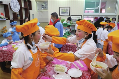 5月31日,迎泽区起凤街小学与并州饭店共同打造的“起凤小厨”煮饭课正式开课。通过专业厨师的教导,培养同学们的动手能力和独立意识。 张昊宇 摄