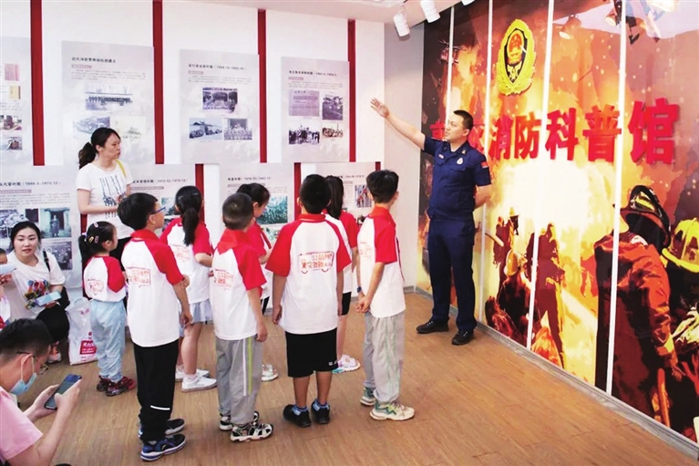 | 6月1日,市消防救援支队高新大队学府消防站接待了来自辖区的孩子们和家长们。孩子们参观李晋兰消防科普馆,观摩实践接水带,体验穿脱消防服,甚至坐上登高车,升到几十米高的空中俯视地面。活动中,少先队代表向消防员敬献红领巾,赠送绘画,大家还一起包粽子,过了一个难忘的儿童节。几天来,陆续有孩子们走进了高新大队的几个消防站,体验消防生活,学习安全知识。他们在消防站里长见识,长知识,满足了好奇心,同时还收到消防员送出的节日礼包——消防安全宣传小册子。 申波 闫男男 摄 |