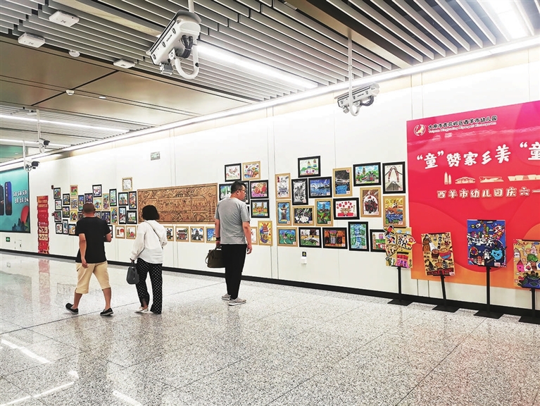| 6月1日,一幅幅充满童趣的作品在地铁2号线府西街站展出,吸引过往乘客驻足观看,这是杏花岭区西羊市幼儿园主办的一场别开生面的毕业画展,主题为“童”赞家乡美,“童”筑中国梦,参展的70多幅作品都来自幼儿园大班的小朋友们。西羊市幼儿园不断尝试依托优质资源,开展家乡文化主题课程。此次画展就是助力幼儿走出校园,与社会深度连接的全新探索。 李杰华 甄珍 摄 |
