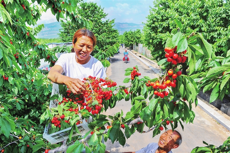 6月4日,尖草坪区南翟村的樱桃喜获丰收,村民们在收获的同时也为市民前来游玩采摘做好准备。 宋卫东 王韵菲 摄