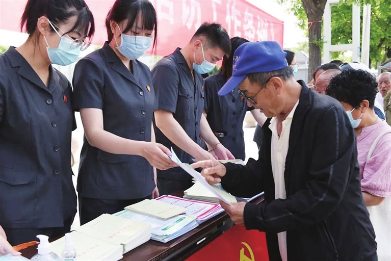 为进一步加强法治宣传,提高全社会法治意识,6月5日,记者从太原中院了解到,连日来,太原两级法院开展了形式多样的普法宣传活动。活动结合打击整治养老诈骗专项行动、宣传贯彻《反有组织犯罪法》《信访工作条例》等重点工作,通过发放普法宣传资料、讲解典型案例等方式,向群众讲解了养老诈骗的常见套路,并通过典型案例详细介绍了黑恶势力的基本特征、常见作案手法,加强人民群众对黑恶势力的辨识度。 陈珊 马倩 摄