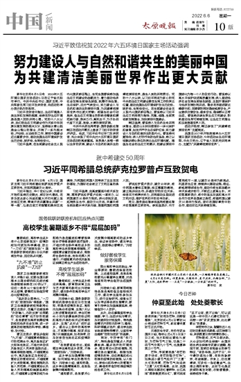 习近平致信祝贺2022年六五环境日国家主场活动强调~~~
