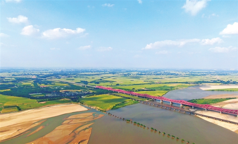 遵循总书记的重要指示,河南积极落实、扎实推进:狠抓环境污染综合治理,黄河干流水质稳定达标、持续向好,35个国家地表水考核断面中28个达到Ⅲ类以上水质标准;完善综合性防洪减灾体系,建成标准化堤防500多公里,黄河滩区居民迁建工程35个安置区全部建成,30万人迁建任务基本完成;推进沿黄生态廊道建设,生态廊道右岸道路基本贯通,左岸道路已贯通489公里,两岸廊道累计绿化10.7万亩;挖掘黄河文化时代价值,推动文化考古发掘和研究工作取得重大突破,21个黄河国家文化公园重点项目启动实施……长河泱泱,利泽万方,一条造福人民的幸福河正奔腾不息。