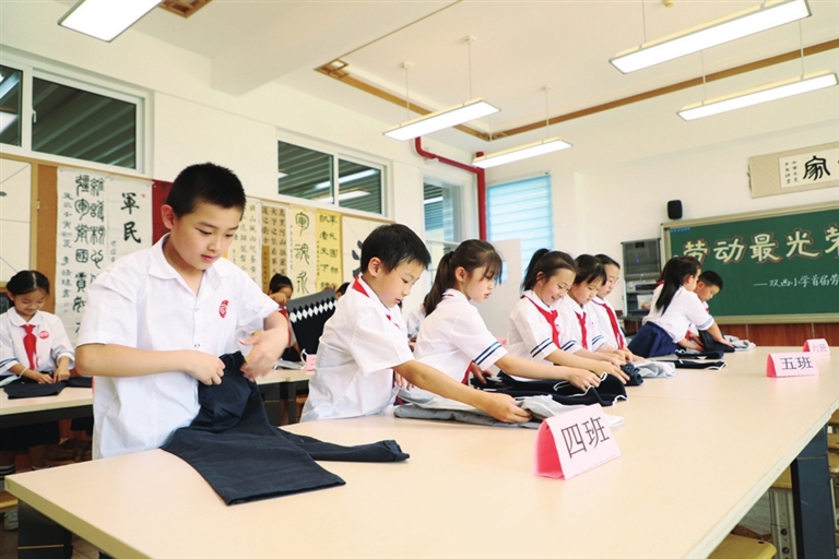 6月11日,迎泽区双西小学开展首届劳动技能大赛,吸引了全校39支代表队的117名选手参赛,比赛包括创意果蔬拼、叠衣服等项目,让学生们增强了动手能力。 张昊宇 摄