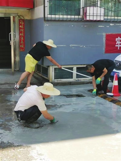 “夏天雨水多,门口这条路‘行人不想走、车辆不愿行’,快想办法修修吧!”面对居民的期盼,社区和物业工作人员广泛征求意见后,物业公司立即组织人员修缮破损路面。为了节省开支,物业公司根据计划倒排工期,细化、量化目标任务,物业管理人员同绿化部、安保部、工程部的员工一起上阵,加班加点确保进度。