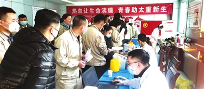 每次献血活动公司团委都会做足前期准备,加强与太原市血液中心沟通,在微信公众号“青春太重”等宣传平台中发布无偿献血倡议书,通过多种形式广泛宣传。各基层团组织上下齐心,联动发力,采取线上报名、线下分批献血的方式,保证人员分流,避免聚集。大家纷纷献出自己的一份爱心,为生命护航,筑健康防线。