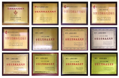 太原市连续12届24年获得“全国无偿献血先进市”荣誉称号。根据国家卫健委统计,2019年太原市千人口献血量达51.2U,位列全国主要城市(省会、直辖市、计划单列市)第一名。