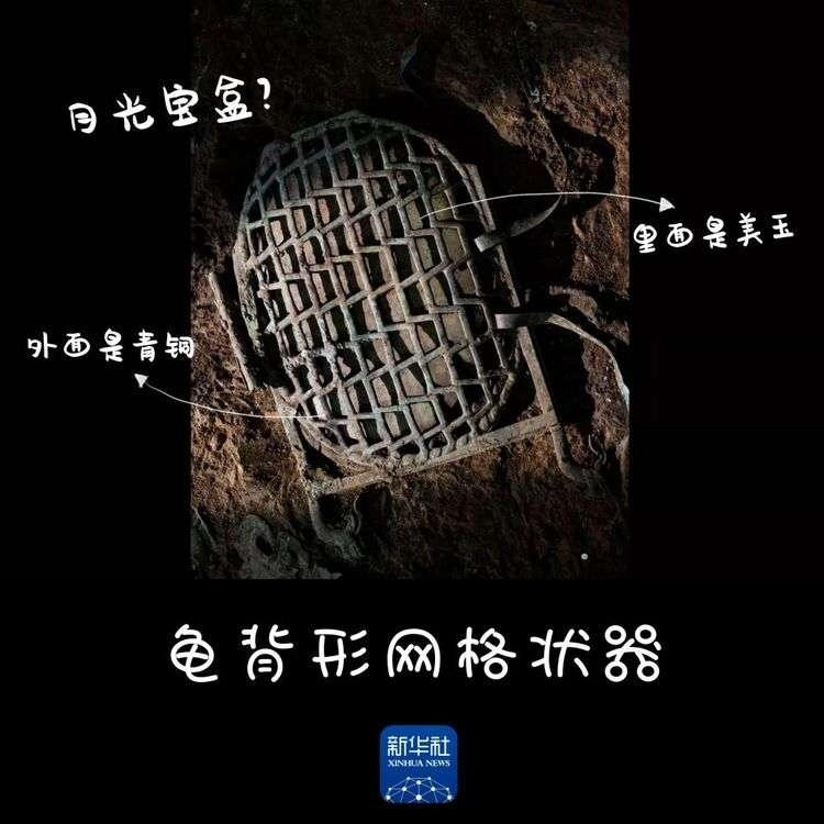 “非常震撼,过去的认知里没有这样的器物,这是前所未有的发现。”黎海超告诉记者,这件文物上有丝绸痕迹,外层是上下对称的龟背形网格状青铜器,一侧类似合页,还附带了四个青铜龙头把手和两三根青铜飘带,最让人称奇的是,青铜器里还装了一块大小形状相合的青绿色玉器,相当于一个裹着丝绸的精巧铜盒里装了一块美玉。