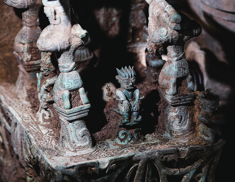 冉宏林告诉记者:“铜人像具有古蜀文明的特征,方座铜器是先周文化的代表,尊是中原文化的代表。这三种文化因素集合到同一件器物上,生动地体现出三星堆是中华文明的重要组成部分。”