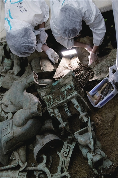 2020年以来,四川省文物考古研究院、北京大学、四川大学等科研机构和高校组成联合考古队在三星堆祭祀区开展发掘,在1986年发现的1、2号“祭祀坑”旁边,相继发现、发掘了距今约3000年的3号至8号6个“祭祀坑”。截至目前,6个“祭祀坑”共出土编号文物近13000件,其中相对完整的文物3155件。