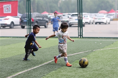 6月12日,山西卓越星足球俱乐部免费为幼儿提供足球培训,让更多低年龄段的孩子接触足球,增强他们对足球运动的认知与兴趣。宋卫东 马鹏 摄
