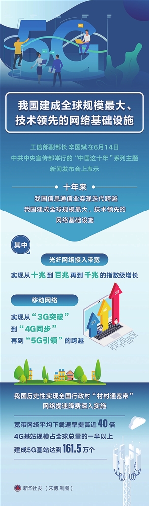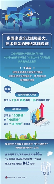 会上发布的数据显示,我国建成全球规模最大、技术领先的网络基础设施,地级市全面建成光网城市。4G基站规模占全球总量的一半以上,建成5G基站达到161.5万个。