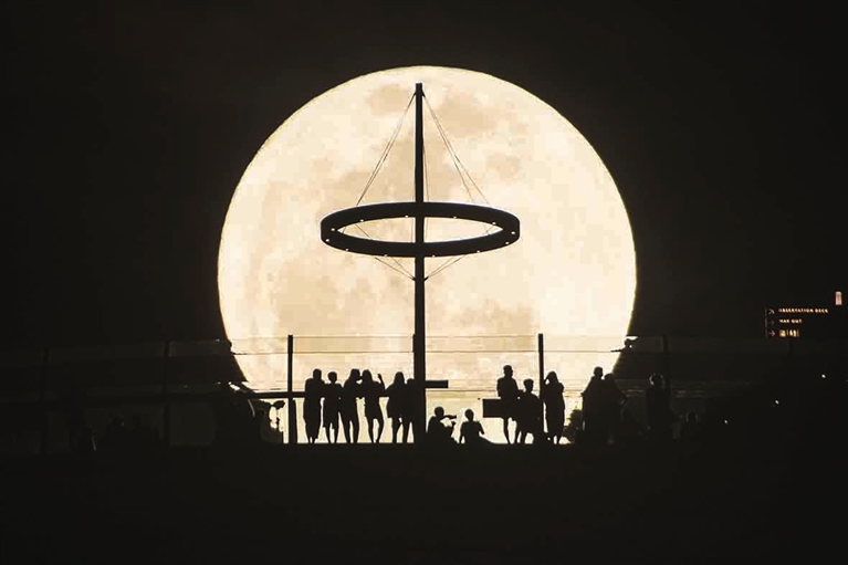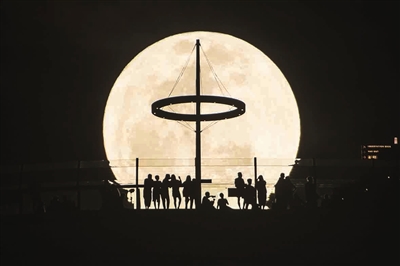 “‘超级月亮’是美国人理查德·诺艾尔提出的名词。”郑捷解释,由于月球绕地球公转的轨道是椭圆,因此当月球到达近地点的时候,在地球上观看月球的视直径达到最大。