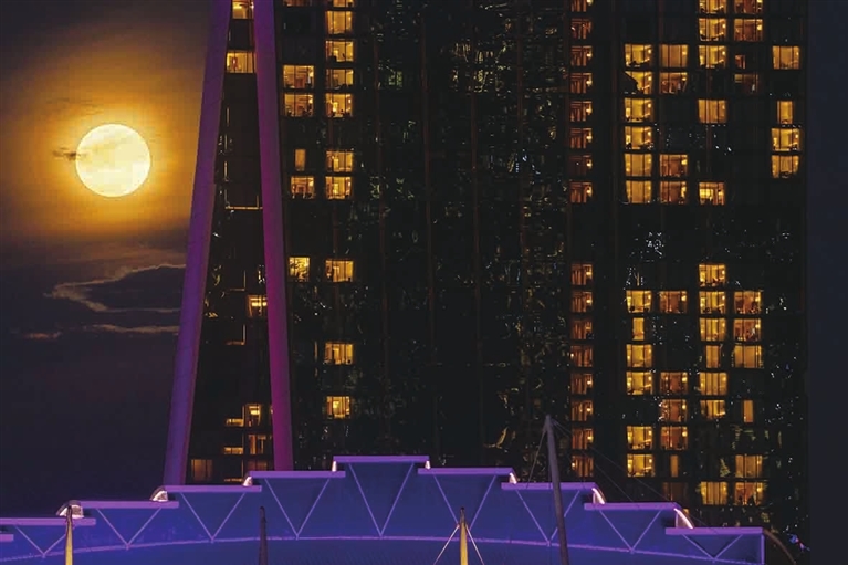 “所以,两者相比,近地点时的满月视直径要大12-14%。但天上只有一个月亮,如果没有合适的参照物,单纯依靠肉眼,其实比较难看出差异。” 中 新