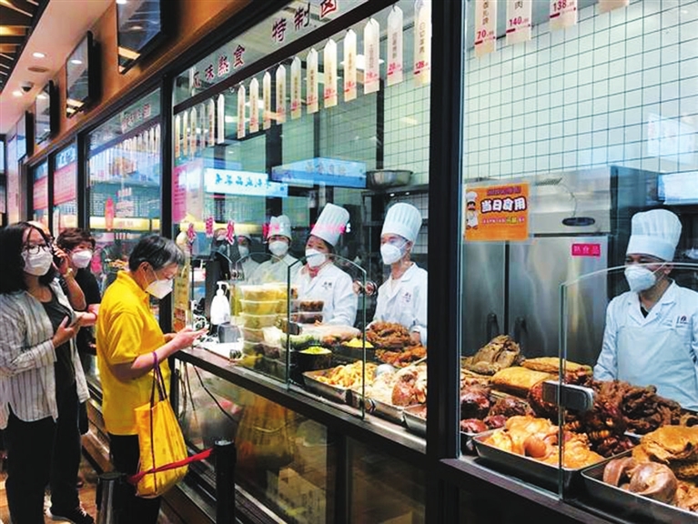 “现制现售的熟食是我们的一大招牌,伴随熟食档的开启,我们复商复市的脚步更快了。”新雅食品餐饮总监蔡梦芸说,看到店外的消费者有序排队进入,自己颇为感慨,“我们期待的消费回来了”。
