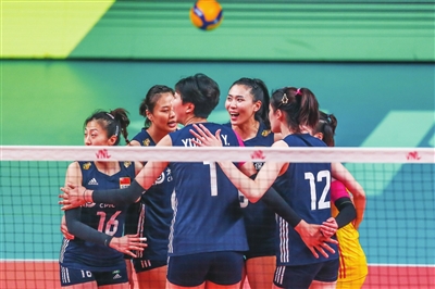 6月15日,在菲律宾举行的2022年世界女排联赛分站赛中,中国队对阵比利时队。 新华社 发