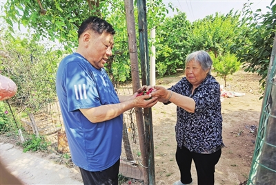 初夏的早晨,南翟村的金滩田园里,樱桃树上密密麻麻的大樱桃色泽红润、饱满剔透。刚完成除草工作的村民王力荣指着自家的采摘园向记者介绍,以前这里种玉米,一亩地的毛收入也就千把块,后来改种樱桃、西梅了,一边吸引游客前来采摘,一边直接售卖,现在一亩地收入能到一两万元。