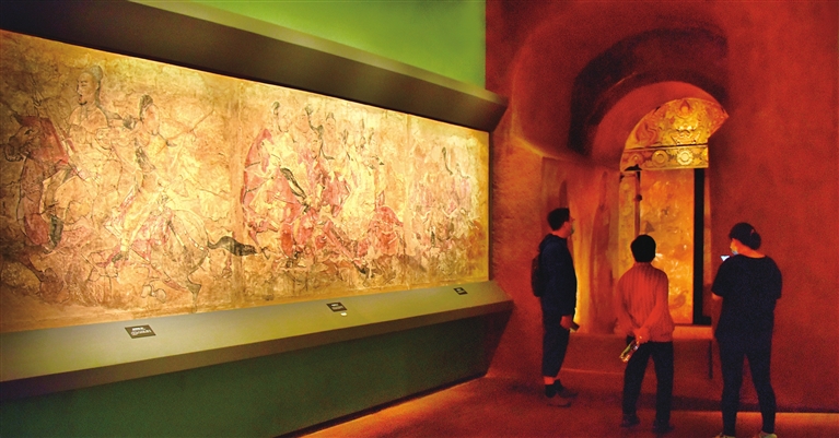 “平城时代”通过方山永固陵、司马金龙墓的出土文物,展示了当时的繁盛。公元398年,拓跋珪迁都平城(今大同),“建宗庙,立社稷”,改国号,史称北魏。拓跋焘即位后,统一北方。至孝文迁洛的近百年间,平城成为中国北方政治、经济、军事和文化的中心。