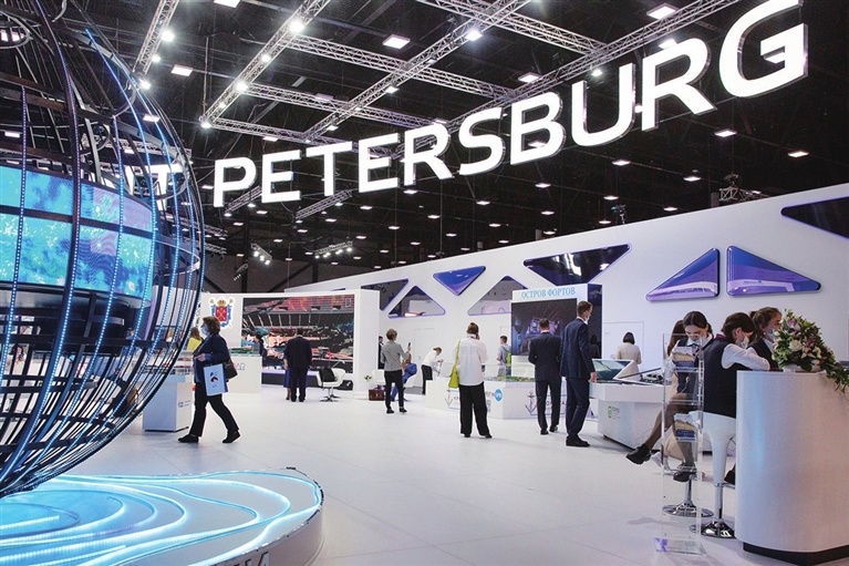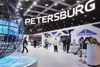 6月15日,在俄罗斯圣彼得堡,人们参观第25届圣彼得堡国际经济论坛展台。 第25届圣彼得堡国际经济论坛15日在俄罗斯圣彼得堡开幕。来自90多个国家和地区的政商人士将讨论世界经济面临的现实问题及解决方案。新华社 发