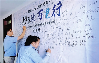 6月17日,太原公交集团电车分公司举行无毒驾驶万里行签名活动,以此提升驾驶员对毒品、“毒驾”的认识,增强司乘人员防毒、拒毒、禁毒的意识。 牛利敏 史海萍 摄