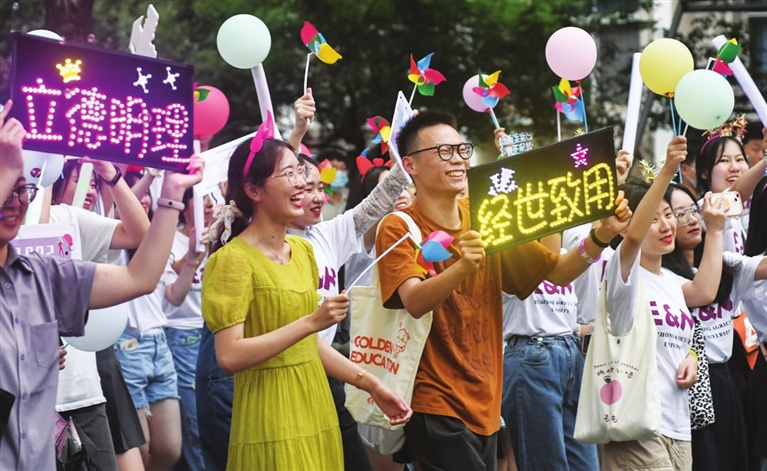 当日,为迎接毕业季,华中农业大学举行一场别开生面的花车巡游,学生们簇拥着由现代农机装备组成的花车队伍,在校园里踱步留影,互致祝福,致敬青春。