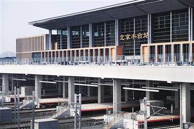 北京丰台站是国内首座采用高铁、普铁双层车场重叠设计的特大型车站,形成了“顶层高铁、地面普铁、地下地铁”的立体交通模式,方便旅客“无缝”换乘城市交通。