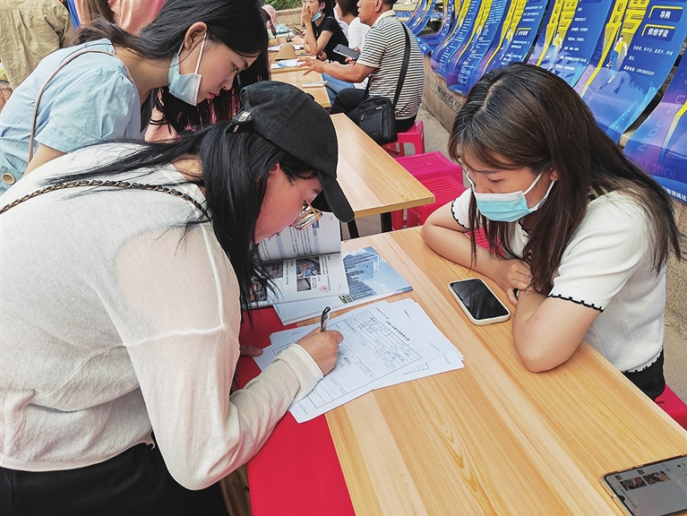 提前在社区微信群和业主群得知消息的居民,迫不及待地跑到小广场应聘。
