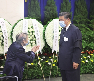 上午9时40分许,习近平、栗战书、汪洋等,在哀乐声中缓步来到张思卿同志的遗体前肃立默哀,向张思卿同志的遗体三鞠躬,并向张思卿同志亲属表示深切慰问。