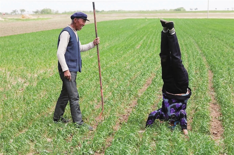 因为常年劳作,武启莲和老伴儿落下了腿疼胳膊疼的毛病。在武启莲老伴加入瑜伽队几个月后,这些毛病竟然好转了。在老伴的推荐下,武启莲也开始跟着练瑜伽:“后来看卢书记教得挺好,老汉身体也好了,我才去的。”