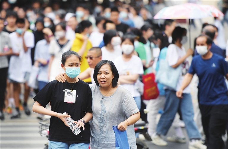 6月22日上午10时30分,2022年中考结束。太原市第二实验中学校,家长与考生信心满满走出考点。 记者 邓寅明 摄