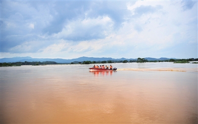 6月22日,在广东省韶关市曲江区樟市镇群星村,救援人员乘坐冲锋舟前往救援。 水利部6月21日发布的汛情通报显示,珠江流域北江今年第2号洪水将发展成特大洪水。 新华社 发