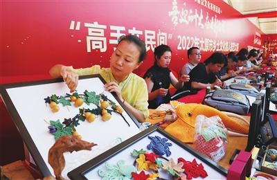 6月24日,由市委宣传部、市文旅局主办的“高手在民间”2022年太原市乡土文化能人技艺大赛在双塔公园举行。活动旨在通过集中展示民间技艺,打造群众文化品牌,培育乡土技艺能人,进一步促进传统民间乡土文化技艺传承发展。 张昊宇 宋卫东 摄