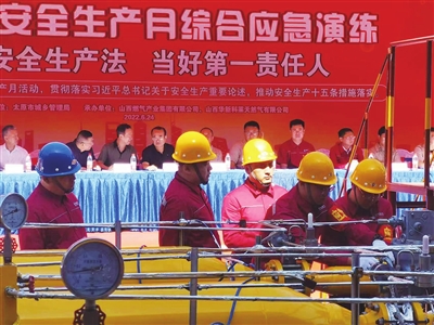 6月24日,山西国新科莱天然气有限公司在小店热源厂举行一次燃气泄漏事故应急演练。“科莱”调控中心接到报警后,立即启动应急预案。应急演练强化了燃气供应单位的应急抢险快速反应能力、救险保障能力、事故处置能力以及团结协作能力,确保燃气泄漏事故发生后能有效组织、快速反应、高效运转、临事不乱。 申波 摄