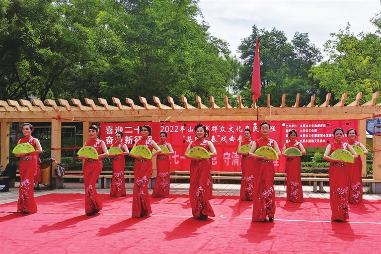 6月25日,一场主题为“喜迎二十大,奋进新征程”文艺文化活动展演在杏花岭区省军区社区举办。旗袍秀、舞蹈、京剧等表演精彩纷呈,丰富了居民的夏日文化生活。 袁剑锋 摄